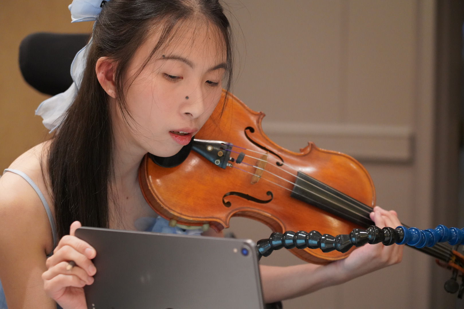 Well, how often do you see disabled musicians and non-disabled musicians on a classical music concert stage? Everyone I talked with was either ‘no’ or ‘never’. As a disabled musician, I grind my way on a stage against all non-wheelchair users. But last year, I lost it. As a patient, considered to be another “complex” patient, I felt fully understood in my own condition, but I experienced a 3-year diagnostic delay, feeling unheard. I had adapted so hard to my violin craft, and had a specialist who was able to help me play despite my quadriplegic diagnosis. I felt so alone as I fought to find the root cause of my battle. And I was fighting against the clock. Because I finally was seen and heard after seeing my surgeon across states, he was worried for my life after seeing how severe my CCI (craniocervical instability), AAI (C1-2 instability), along with the damage of cervical medullary syndrome from brainstem compression. That’s the unstable joint in the very top of my spine to my head, which flipped my life upside down since 2020. It is a miracle that I am still here today.