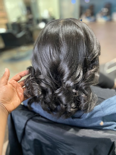 Honestly, it’s the look of relief I see on my client’s faces when they sit in my chair and sense that they are in good hands. As soon as I touch their hair, I feel all tension and worry rapidly fade away. From the wash to the blow-dry, press, and style, all worries and concerns are washed away as they relax and no longer have fear and or uncertainty of the luscious locks that now flowing through my hands with ease. most of my clients have gotten their hair done before but very few have received a luxurious treatment or lavish haircare experience. yet, the most inspiring portion of it all is when I finally turn them towards the mirror and reveal what has been created with just a little love, patience, and knowledge. Sometimes I get hugs many times it may even be tears of unexplainable joy but that’s what inspires me every day to wake up and change lives, making natural haired women feel beautiful with the hair they are blessed with is a business I wanna be in for the rest of my life.
