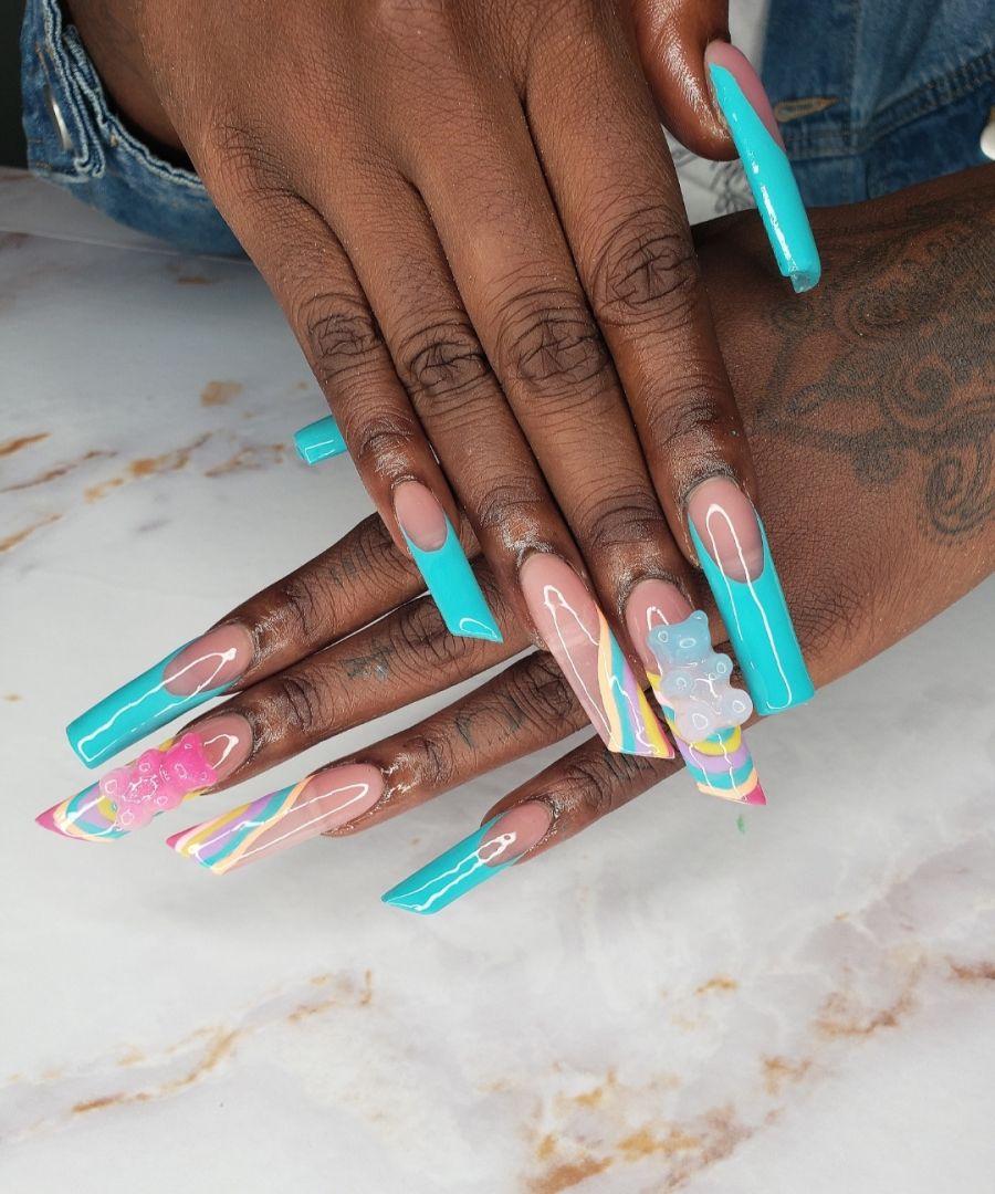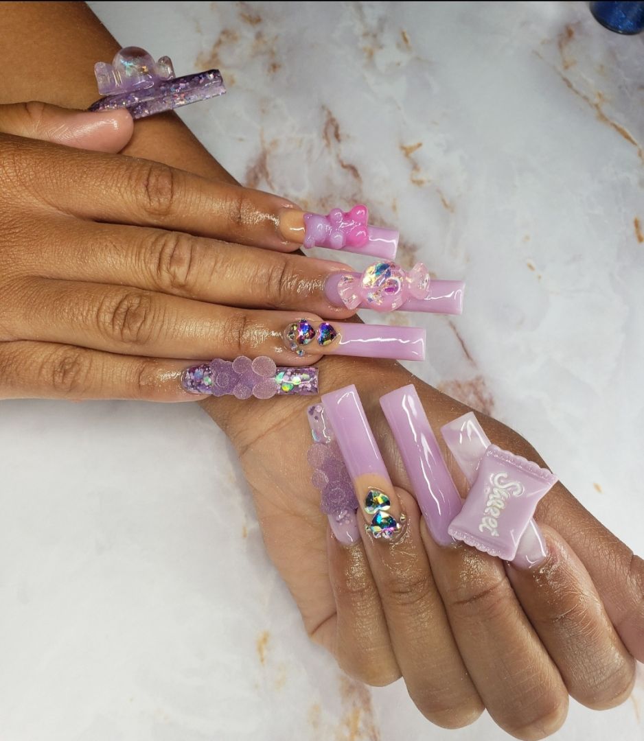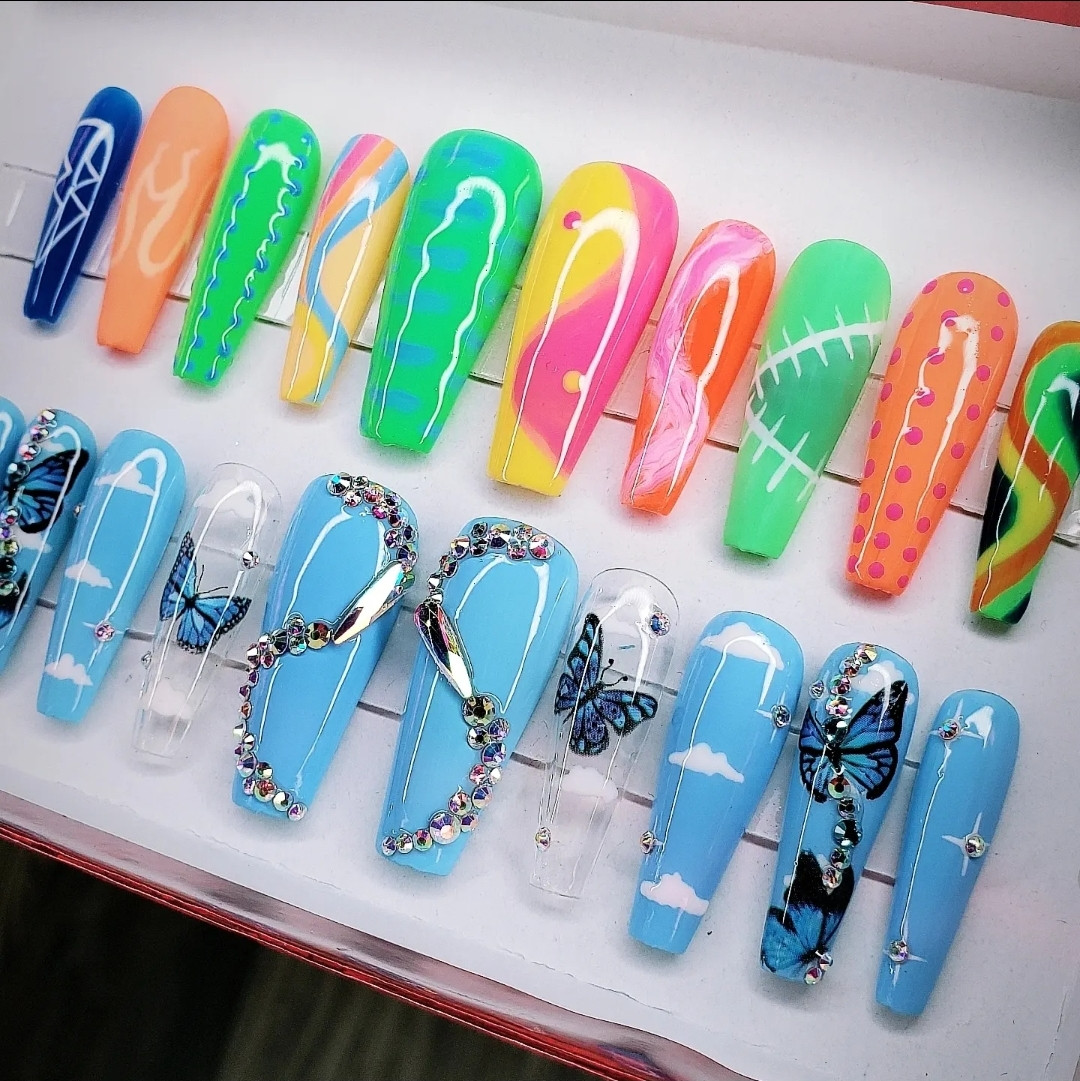 I specialize in acrylic nails, gel press on and acrylic press on nails. I am best at doing ombre, marble, and encapsulated nails. I am learning to get better at hand painted designs which can be a bit challenging at times. Doing nails at first wasn’t easy. I had a hard time getting clients and staying consistent. At times I thought maybe doing nails wasn’t for me. But I knew I was put here to do something with art, and doing nails was what I really enjoyed doing. After finishing my 600 hours to gain my license I felt so accomplished and tried to stay consistent as much as possible. Staying on top of trends on social media helped me stay consistent and posting my work. I started to gain more clients. I’ve learned that consistency is key when it comes to being a nail tech.