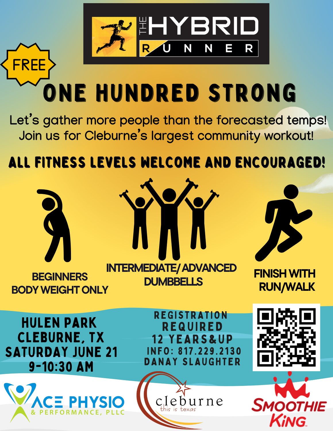 I appreciate Cleburne Parks and Recreation and our partners Smoothy King Cleburne and ACE Physio for their outstanding support for this event. Our partners and town rocks! I can’t wait to enhance this event based on everyone’s feedback and look forward to more collaborations in the future!