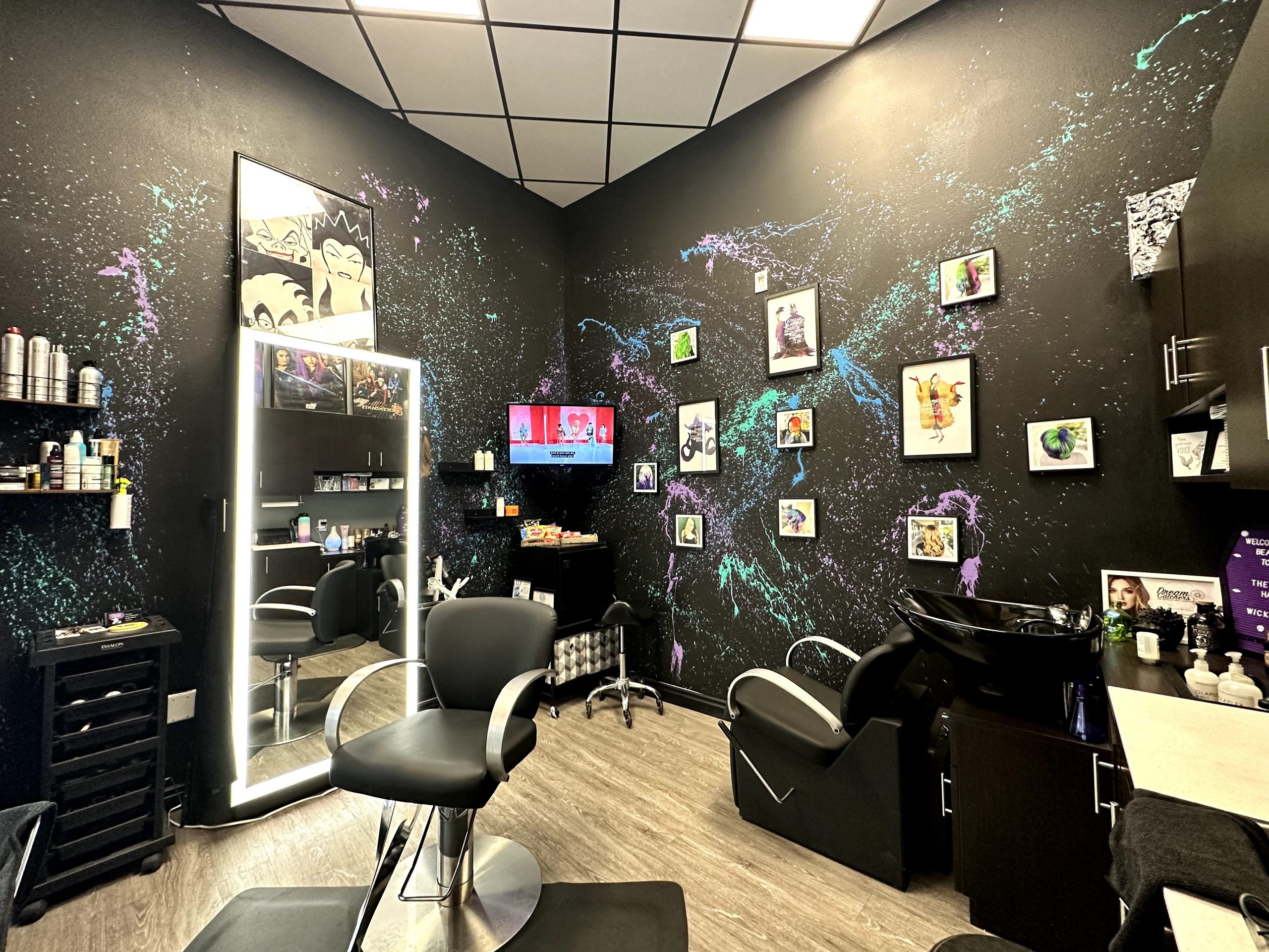 The Haus of Wicked is unique and interesting as not only a business but an experience. I wanted to create a place that people could come and literally be transported away from the human world problems. Inspired by Disney Villains and all things Wicked and mystical, the moment you step into my salon you are no longer bound by the problems of the world. This is a space to be crazy, wild, wicked, and just be yourself! I love that when my clients step into the salon, I just see their shoulders relax and the sparkle come back into their eyes.