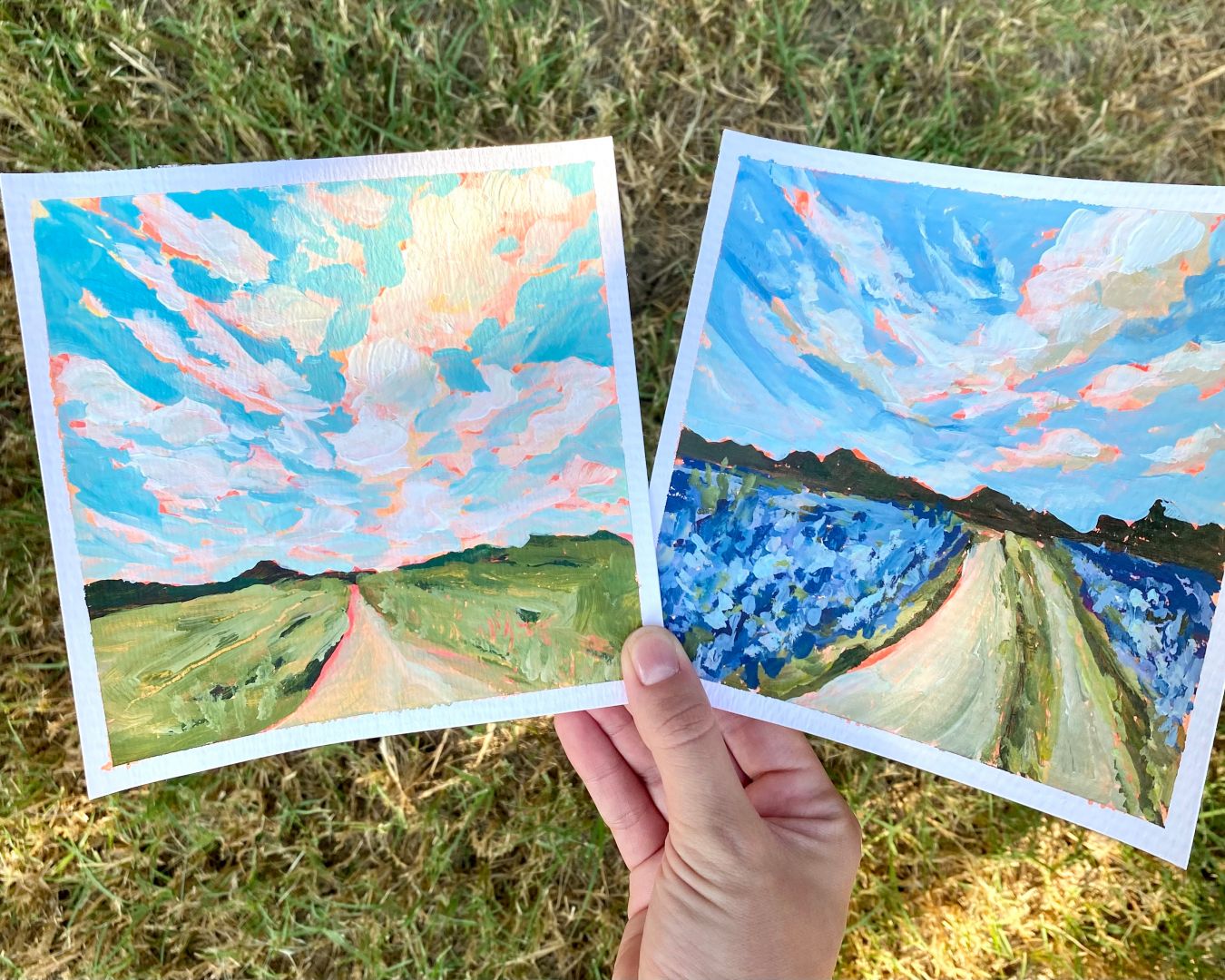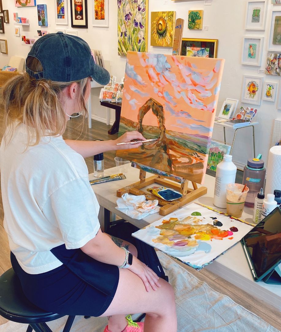 I like to say that my career as an artist came naturally, but that doesn’t mean it has always been easy. I started painting landscapes back in 2020, right after I moved across the country to Texas. I’m a pretty outdoorsy person, so being stuck at home, especially in a new place, was difficult to say the least. I began searching “hikes near me,” and much to my dismay, the results showed our neighborhood park as the best option. Painting one of the places that I missed seemed like the next best thing to do, and I was immediately hooked. This led to me creating my first painting series, and probably the one that I’m best known for and most proud of – I created a landscape painting for each of the 50 states!