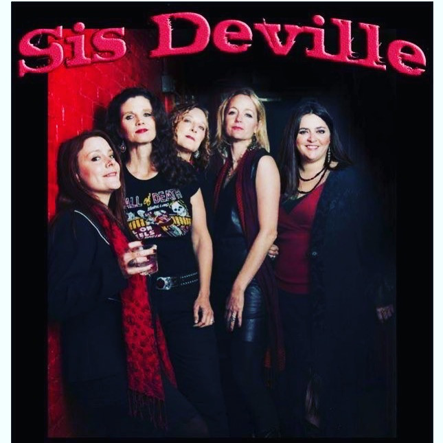First main portrait photo- taken by Dixie Dixon Images 1&2 Front Porch Thursday show with Floramay Holliday and Gabor Racz. Special guest, our daughter, Adelaid Racz Sis Deville- 3. Floramay stage jumps, photo by Aliya Rosegreen 4. Sis Deville poster- (left to right) Carolyn Wonderland, Lisa Pankratz, Sarah Brown, Floramay Holliday & Shelley King 5. Sis D- Carolyn Wonderland, Floramay Holliday and Shelley King (photo by Nichole Wagner) 6. Over the River bluegrass band – Larry Reed, Don Thacker, Floramay Holliday, Erik Swanson, Kim Herriage , live at the Allen Public Library 7. Duo show- Floramay Holliday and Gabor Racz