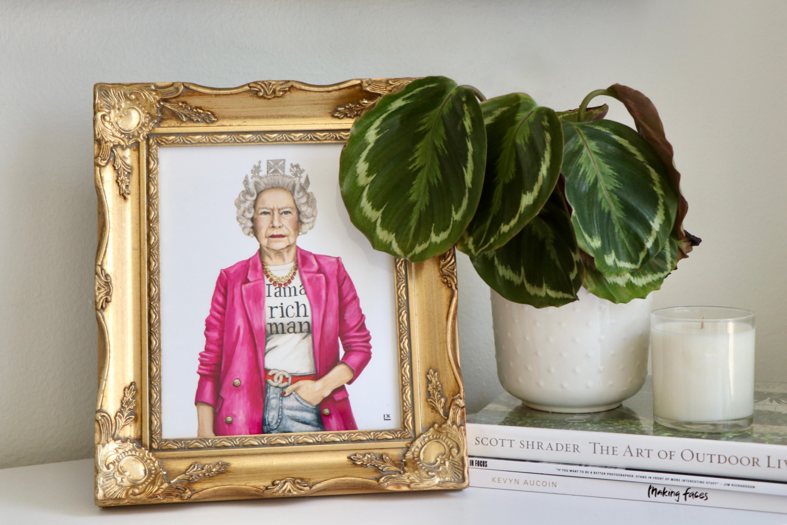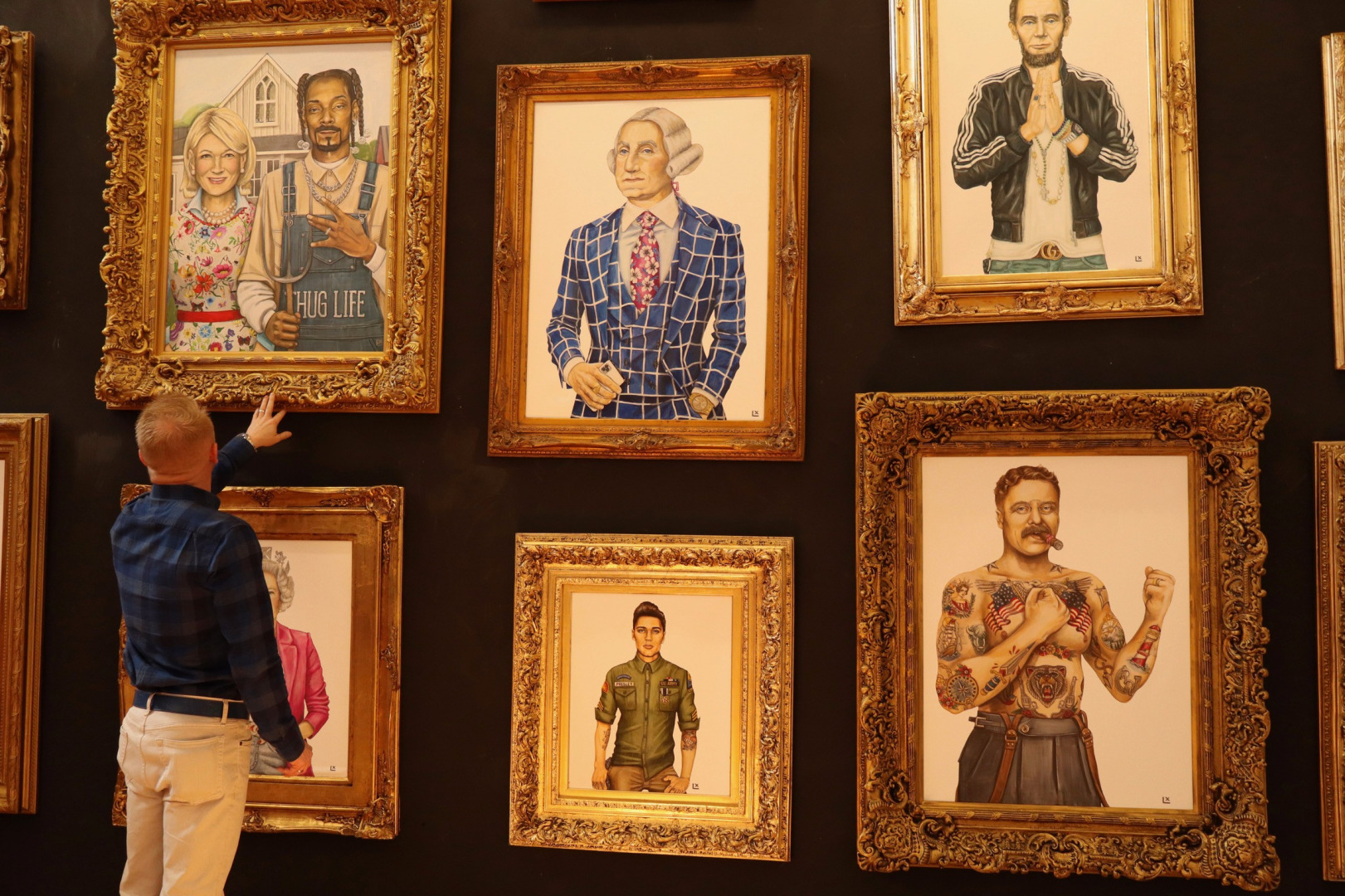 I use the term ‘pop portraiture’ to describe my style. I paint people that are significant for being Rebels, Founders, and Icons. Though some portraits are humourous, such as George Washington rocking a Louis Vuitton tracksuit and dripping in gold, there is significance to each detail. Each piece is packed with hidden history that tells the story of that person’s life, their struggles, and their legacy.
