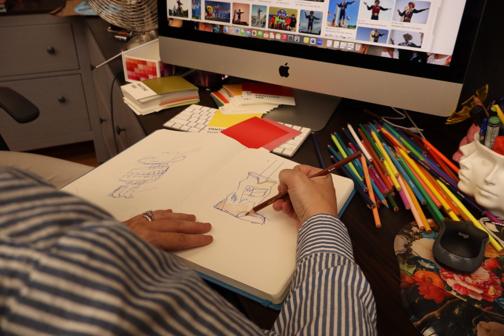The most important part of my work is the month prior to painting each subject which I spend doing research. I spend more time in research than I do painting the subject and that time holds the most meaning for me. After completing each portrait, I create a key so collectors can see the meaning of each detail. It’s all about mixing bold imagery with layers of significance.