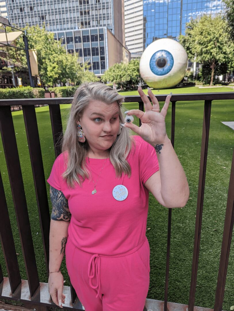 My all time favorite thing to do of all is go into downtown Dallas and visit the “giant eyeball,” a tourist attraction. Given I have a prosthetic eye it makes for a great photo opportunity, my friends always seem to get a kick out of it given one of my most famous one liners is “i have one eye so…” It’s part of the Megan experience.