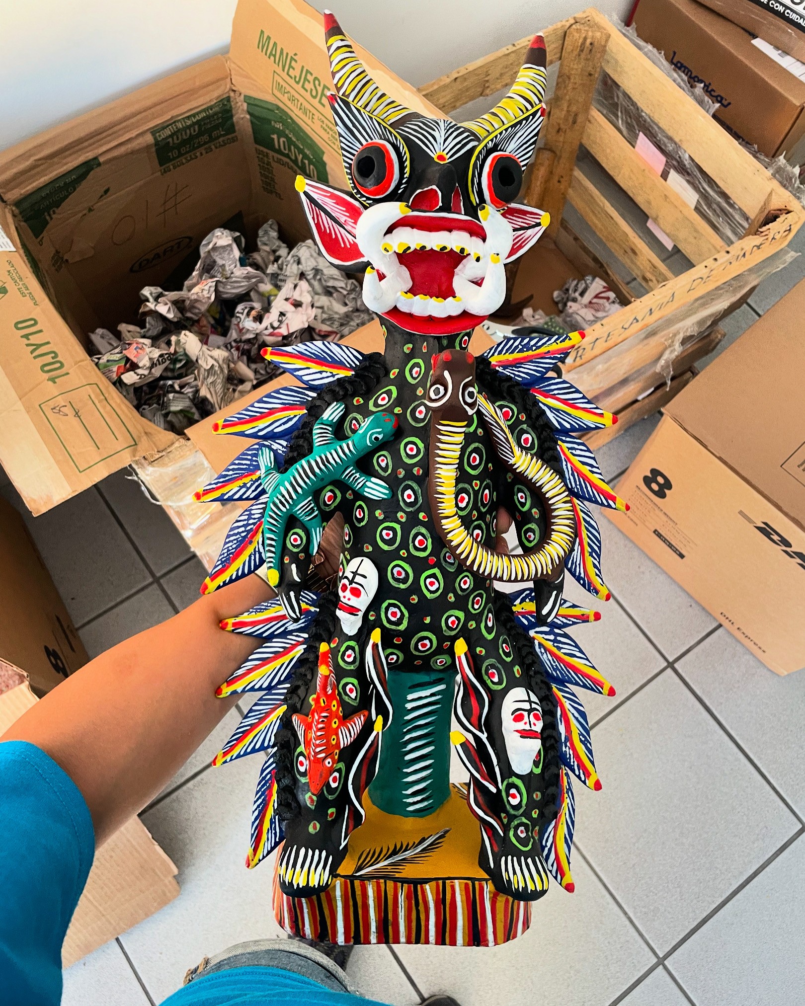 Because I have the privilege to travel back and forth with ease, I decided that the best thing for my store would be to bring back art that isn’t commonly seen. For sourcing, I personally travel to small artisan towns to find artisans/new crafts techniques and mediums. I get to hand select every single piece that is in my shop, so the store is this wild cornucopia of bright Mexican cultures.
