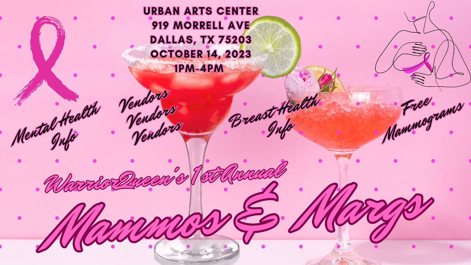 WarriorQueen will be hosting our first event this October for breast cancer awareness month. The event is WarriorQueen’s 1st Annual Mammo & Margs which will be held at the Urban Arts Center, October 14, 2023, 1PM-4PM. We will have vendors, health professionals discussing breast and mental health, along with tons of other fun things. You all should definitely come out because Early Detection Saves Lives.