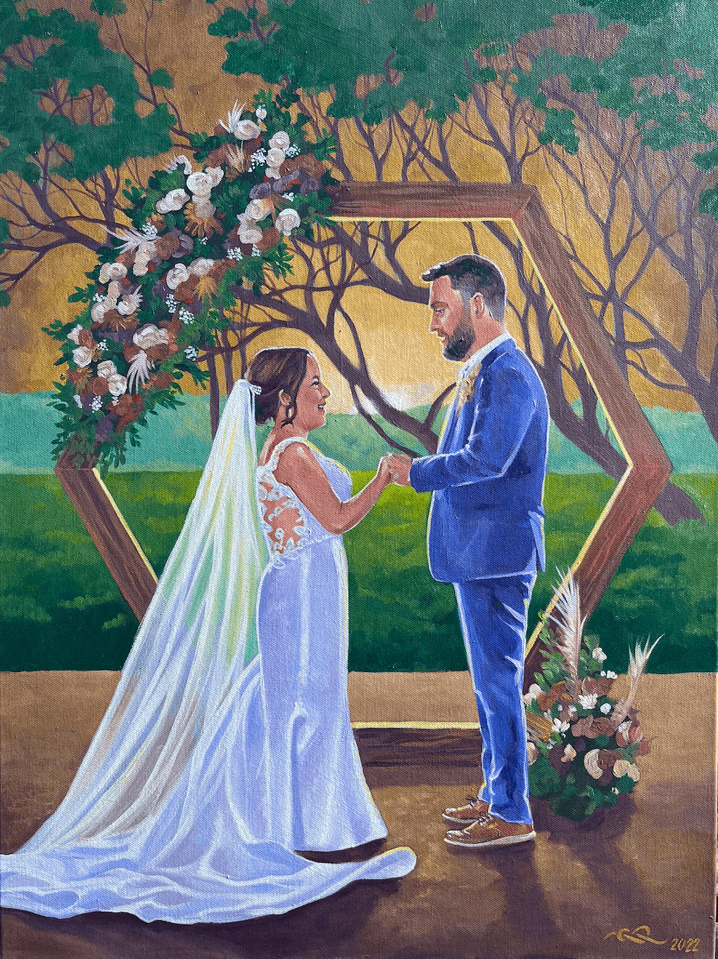 Prior to this, I had never heard of what is now called “live event painting”. Word spread organically, and within a few years, several more people also asked me to paint their weddings. Eleven years ago, I quit my safe corporate job and began my career as a full time live painter.