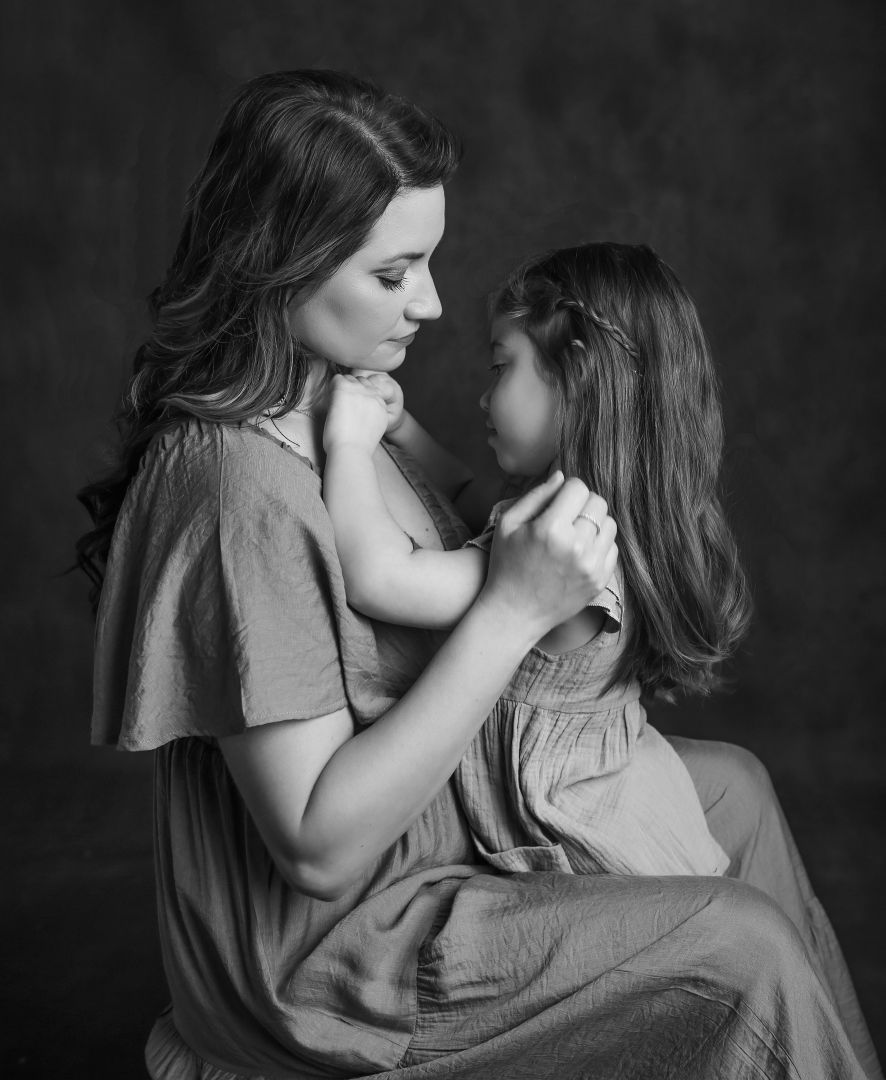 I moved to a studio where I simplified the backdrop to just black or white, I guided clients to a simpler wardrobe, and I took away all the color. What we are left with are images that focus on highlighting the expression and relationships.