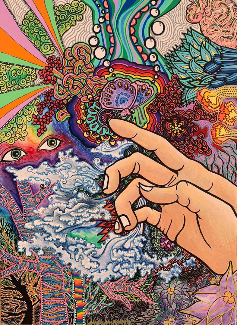 I consider myself an Intuitive Artist, meaning I receive messages clairvoyantly, or within my minds eye. These images and messages reveal themselves in dreams, while listening to music, or during someone speaking. I have a sketch book that I keep with me so I can sketch down visions that I receive throughout the day or night. I receive messages from God/the Universe in order to assist in the healing of this world and it’s my intention that my art helps it’s viewers find peace, happiness and freedom. To create, I follow my intuition and whether I understand it or not it’s my mission to show what needs to be Known. At times, my art is dark and colorless, and at others it’s wild and full of every color possible; it all depends on what my soul is calling me to create. Many creators have a specific look or theme to their art but knowing that my inspiration comes from the Universe I understand that my style will evolve with what this world needs. Following my intuition has proven to be the key to my success because the moment I try to operate from a worldly place, I stumble and fail.